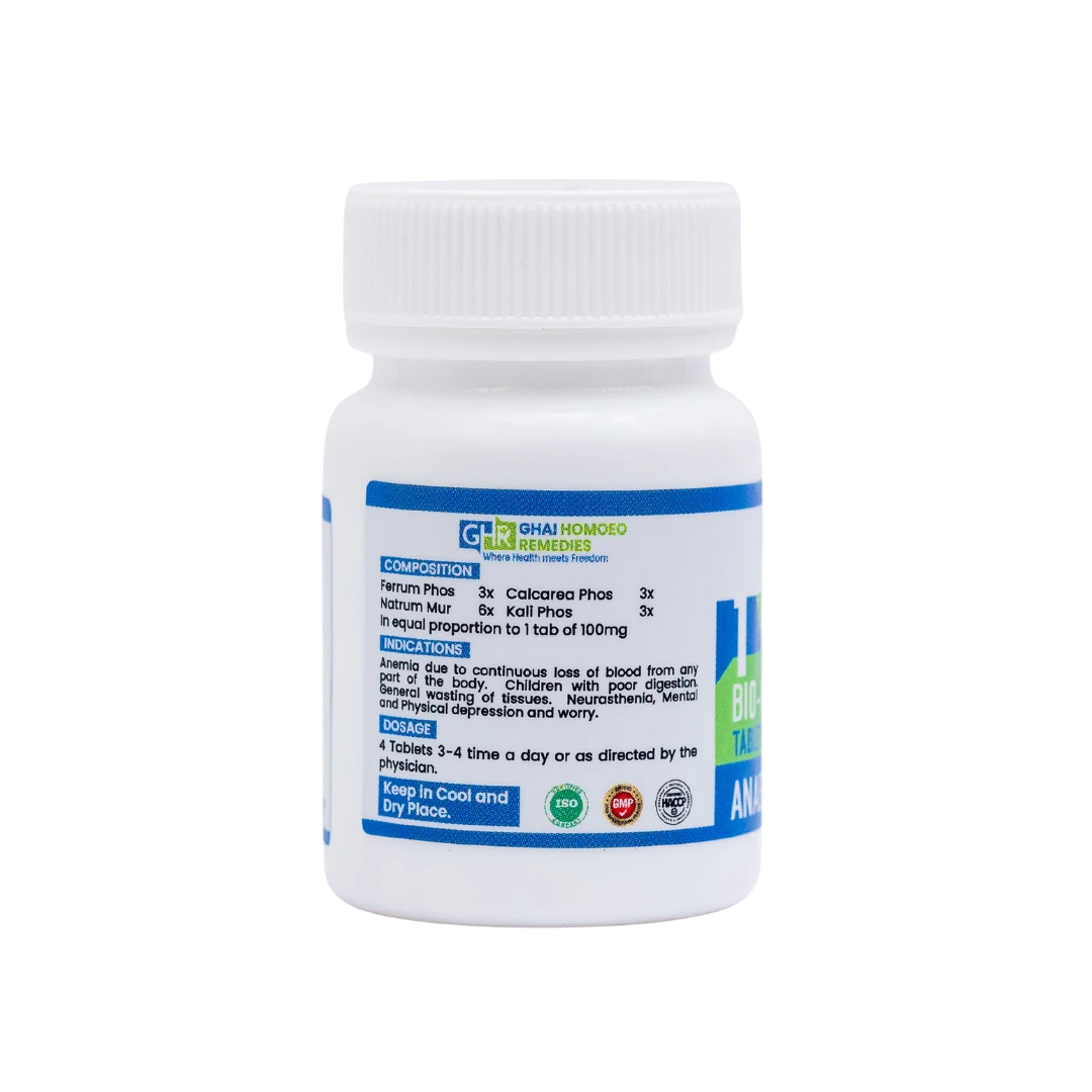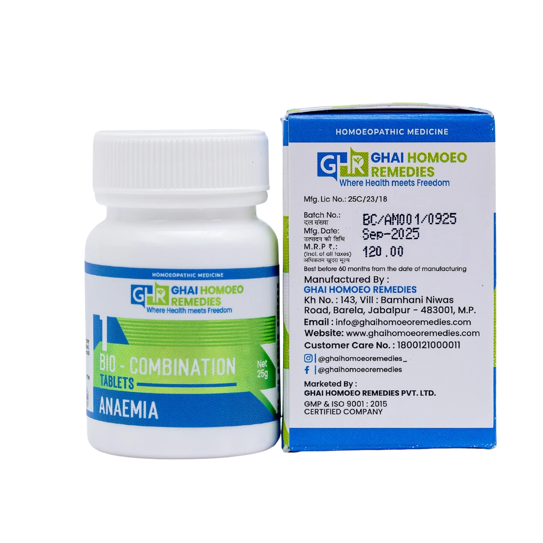 GHR Bio Combination 1 corrects anemia and boosts vitality. This homeopathic remedy, styled like SBL's Bio-Combination No. 1, replenishes essential minerals for red blood cell production and overall weakness. It aids recovery from blood loss or growth phases.