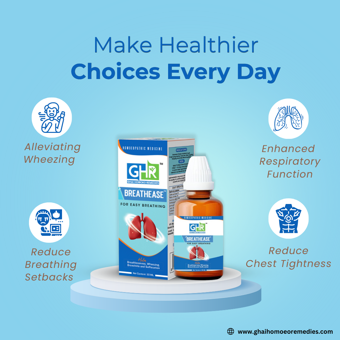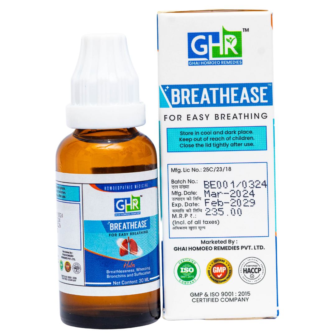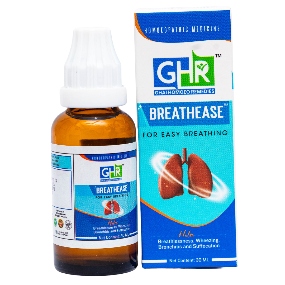 Breathease Drops are a homoeopathic combination medicine formulated by Dr. N. K. Ghai for relieving symptoms and addresses the underlying cause of recurring breathlessness.