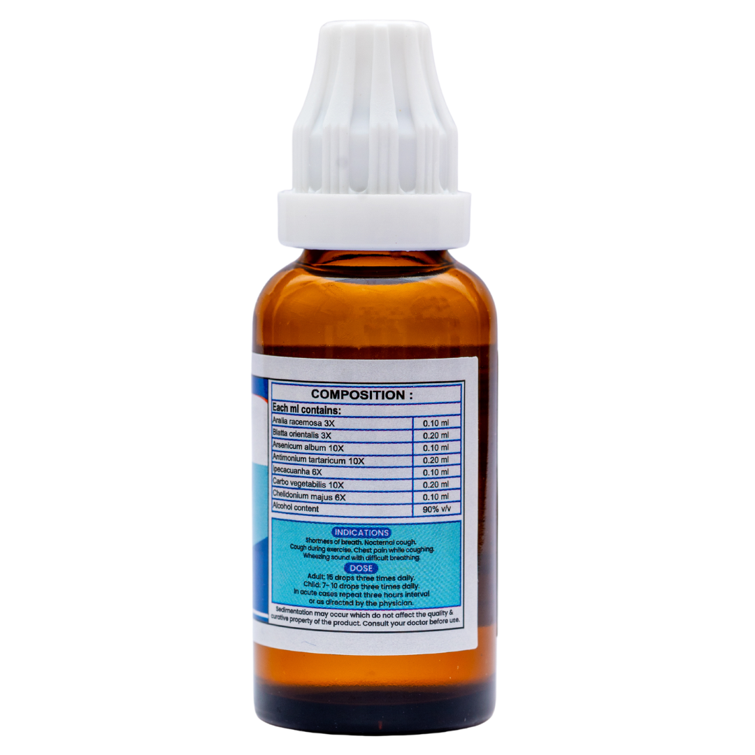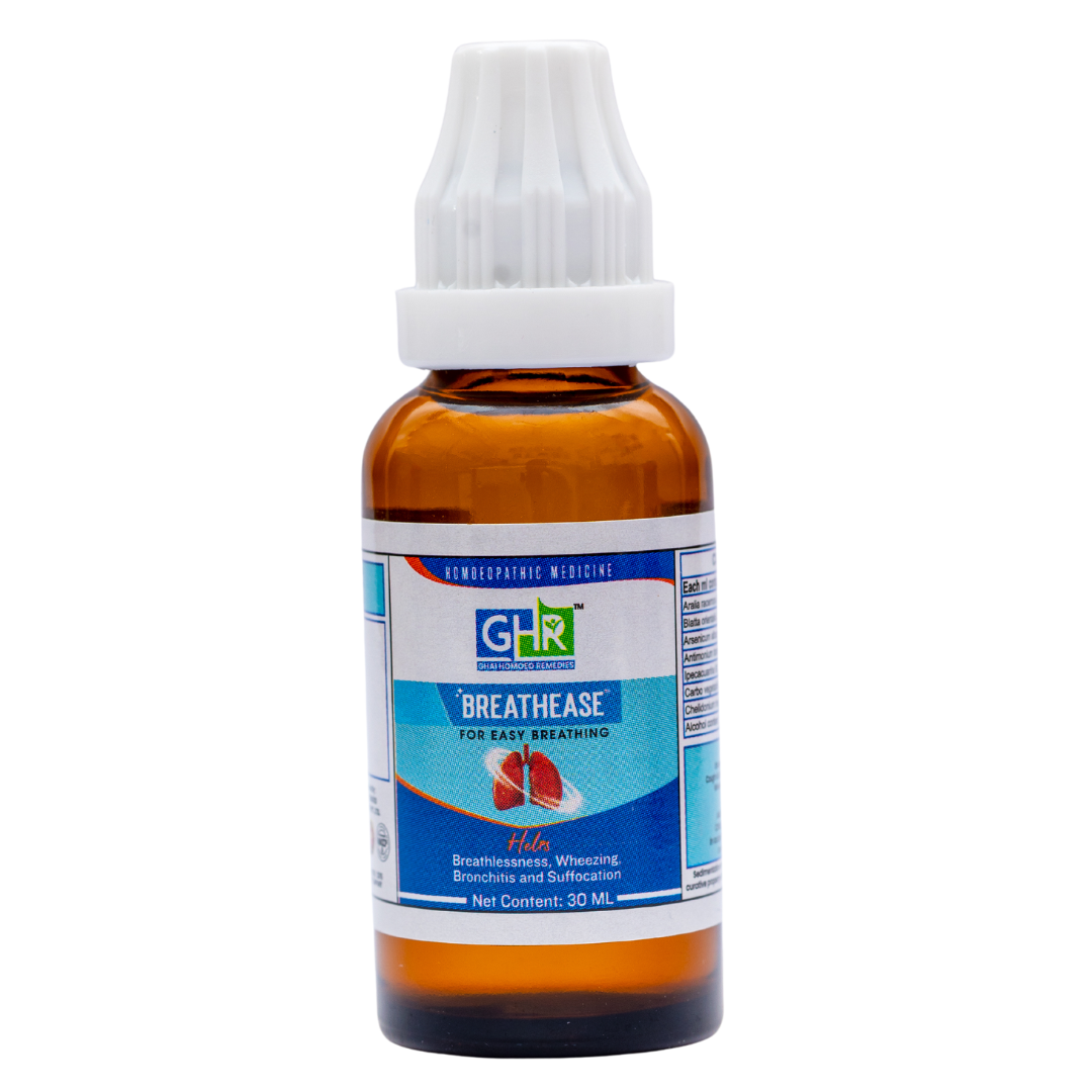 Breathease Drops reduces breathlessness, wheezing, bronchitis, shortness of breath, nocturnal cough, exercise-induced cough, chest pain while coughing, increased respiratory rate, and difficulty in speaking.