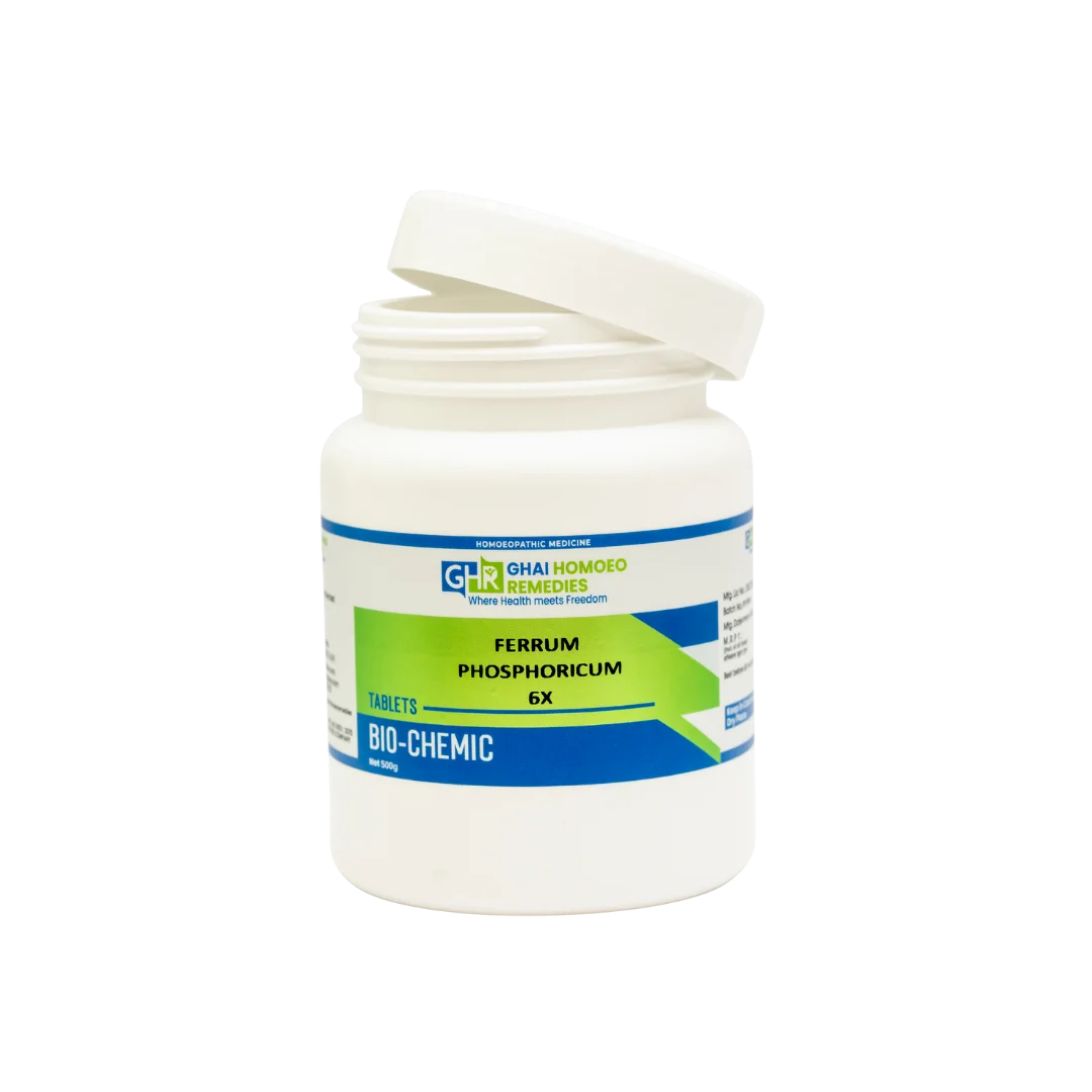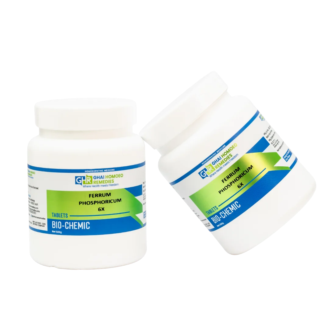GHR Ferrum Phosphoricum addresses early inflammation, fevers, and blood-related weakness. This homeopathic biochemic tissue salt, aligned with SBL's Ferrum Phosphoricum 6X, enhances oxygen transport in blood cells for rapid recovery from injuries and fatigue.