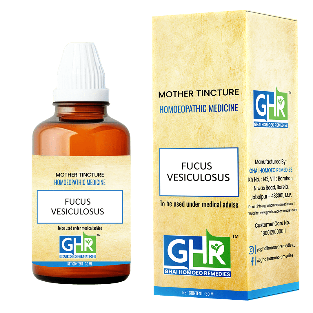 GHR’S Fucus Vesiculosus Mother Tincture is a homoeopathic that efficiently helps in lowering elevated body weight brought on by a number of factors, including disorders linked to the thyroid and enhanced metabolism. It contributes to weight loss by speeding up the digestive process. It also helps with exophthalmos therapy. It enhances digestion and lessens flatulence. It is useful for forehead discomfort and constipation. It is a potent mother tincture that helps deal with complaints of high blood sugar levels and related symptoms. It can also be used as a painkiller to relieve pain all over the body. It improves the immune functions of the body. It is beneficial for overall wellness and health.