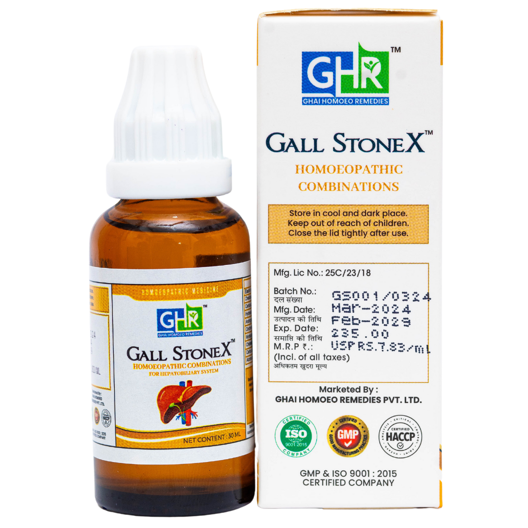 Dose: Gall Stonex is advised to be determined by a qualified homeopathic medical practitioner to ensure personalized treatment tailored to individual needs. Alternatively, a general recommendation suggests adult: 10-15 drops three times daily. Child: 7-10 drops three times daily.