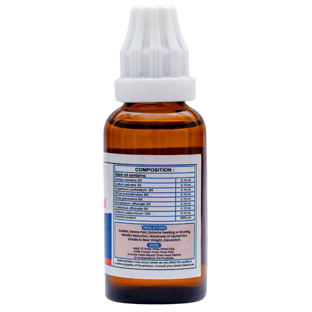 Composition: Arnica Montana, Ledum palustre, Hypericum perforatum, Rhus toxicodendron, Ruta graveolens, Symphytum officinale, Calendula officinalis, Natrum sulphuricum
