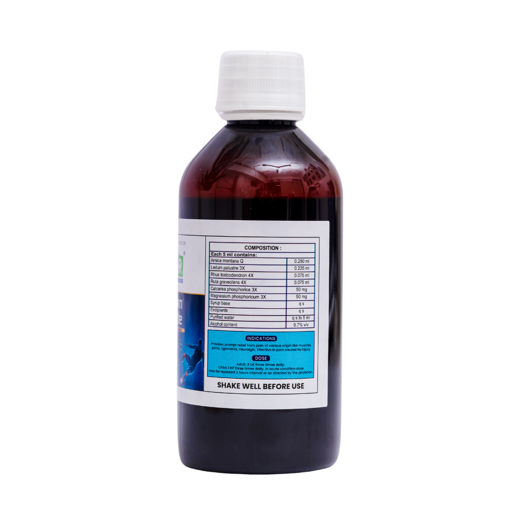 Composition: Arnica Montana, Ledum palustre, Rhus toxicodendron, Ruta graveolens, Calcarea phosphoric, Magnesium phosphoricum